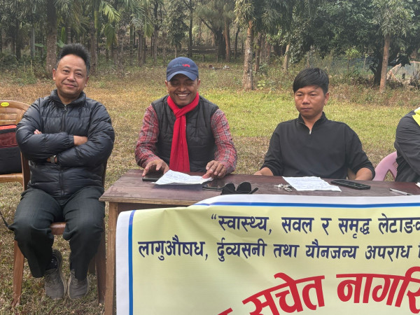 नवगठित लेटाङ सचेत नागरिक समाजका अध्यक्ष भरतकुमार राई, सदस्य एकराज अधिकारी र सल्लाहकार भविन्द्रकुमार लिम्बूले लेटाङमा लागुऔषध दुर्व्यसन बढ्दो क्रममा रहेकाले नियन्त्रणका लागि अभियान सुरु गरिएको बताउनुभयो ।