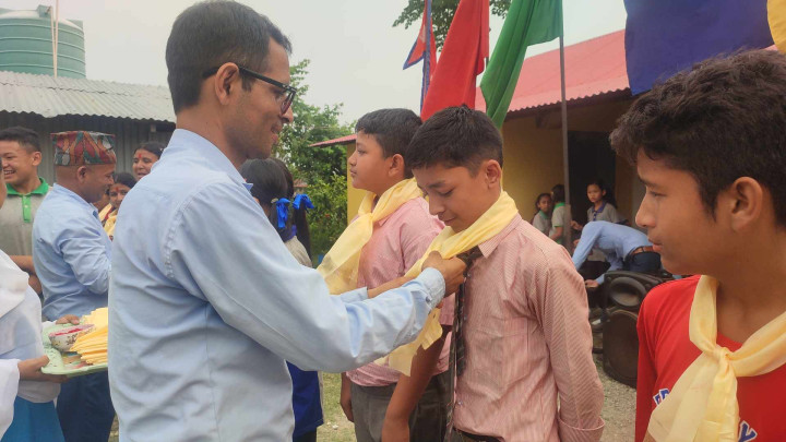 सो अवसरमा कार्यक्रमका प्रमुख अतिथि तथा विद्यालयका प्रधानाध्यापक भोलानाथ पाण्डे, व्यवस्थापन समितिका पदाधिकारीहरु, बाल क्लवका प्रतिनिधिहरु लगायतले विद्यार्थी तथा उनीहरुका अभिभावकलाई समेत दोसल्ला ओढाएर टीका लगाई स्वागत सम्मान गर्नुभयो । विद्यार्थीहरुलाई स्वागत गर्दै बाल क्लवका प्रतिनिधिहरुले पुष्पगुच्छा अर्पण गरि पेन्सील तथा डटपेन उपहार प्रदान गरेका थिए ।