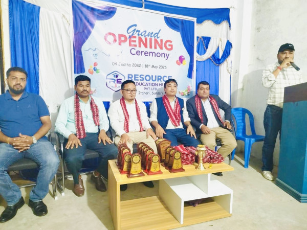 रिसोर्स एजुकेशन हब प्रा. लि. का अध्यक्ष नरेन्द्र दंगालको अध्यक्षतामा भएको कार्यक्रममा शैक्षिक परामर्श व्यवसायीहरुको सँस्था राष्ट्रिय शैक्षिक परामर्श संघ (नेका) कोशी प्रदशेका अध्यक्ष सन्तोष कुरुङवाङले रिवन काटेर कन्सल्टेन्सीको उद्घाटन गर्नुभयो । कार्यक्रममा राष्ट्रिय शैक्षिक परामर्श संघ (नेका) कोशी प्रदशेका सँस्थापक अध्यक्ष मोहन विक्रम तिगेला, कोषाध्यक्ष चन्दन माझी, इटहरी जेसीजका मासचिव मिलन कार्की लगायतको आतिथ्यता रहेको थियो ।